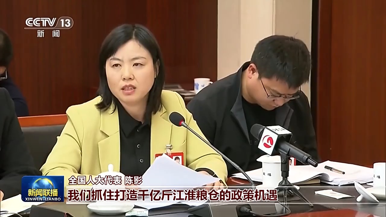 全国人大代表 陈影:作为种粮大县,我们抓住打造千亿斤江淮粮仓的政策机遇,深入实施藏粮于地、藏粮于技的战略,良种、良田、良机、良法有机融合,多种粮、种好粮,不断提升粮食产量和效益。