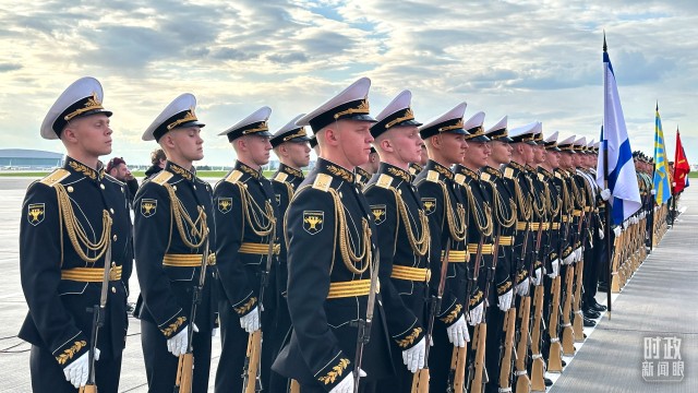 △仪仗队列队迎接习主席到访。(总台央视记者范一鸣拍摄)