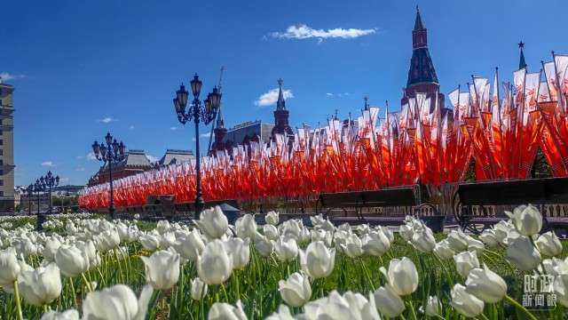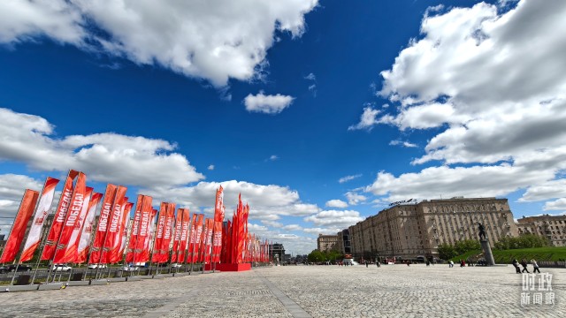 △莫斯科街头的胜利日旗帜。(总台央视记者杨波拍摄)