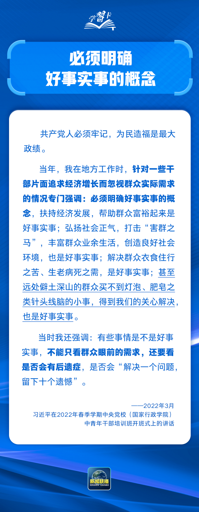 “政绩观问题是一个根本性问题,关乎立党为公、执政为民。”党的十八大以来,习近平总书记反复强调要树立和践行正确政绩观,近期又在多次重要讲话中特别加以强调,为开展学习教育指明了方向、提供了重要遵循。