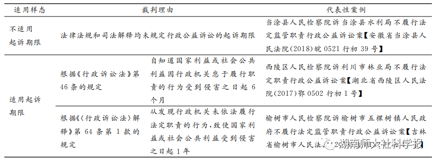 表2环境行政公益诉讼中确认违法判决的起诉期限适用淆乱情况梳理
