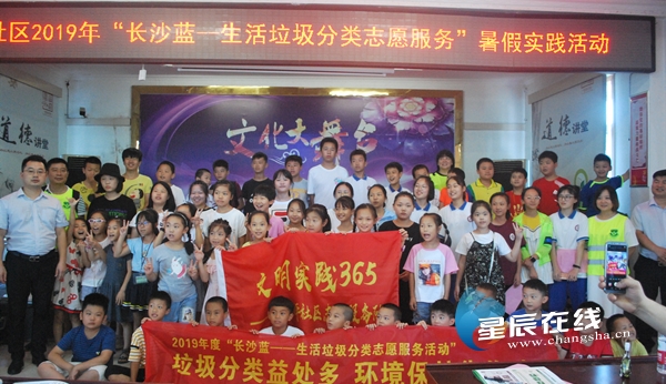 星辰在线7月25日讯(通讯员 苏青)垃圾分一分,环境美十分。7月24日下午,芙蓉区火星街道曾家坪社区365文明服务实践站联合长沙农村商业银行、长沙市绿舟防灾减灾促进中心开展“长沙蓝——生活垃圾分类志愿服务”活动。