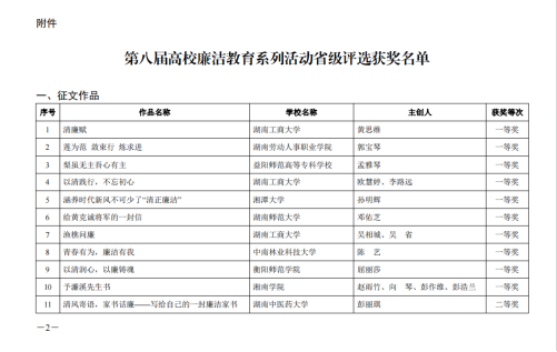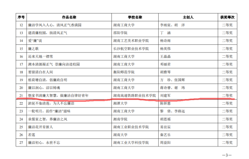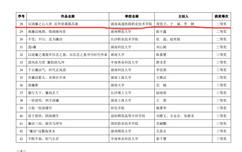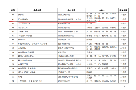 湖南高铁职院廉洁文化作品在“第八届高校廉洁教育系列活动”中喜获佳绩