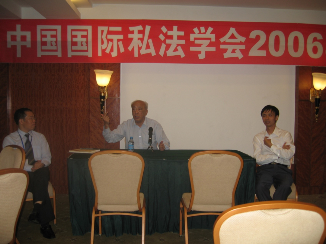 由于韩老师是国际私法学界的泰斗,而姚老师又是中国国际经济法的奠基人,众望所归,我带领一批年青研究生,从1985年起便着手筹划成立以两位老先生为会长的“中国国际私法研究会”和“中国国际经济法研究会”。
