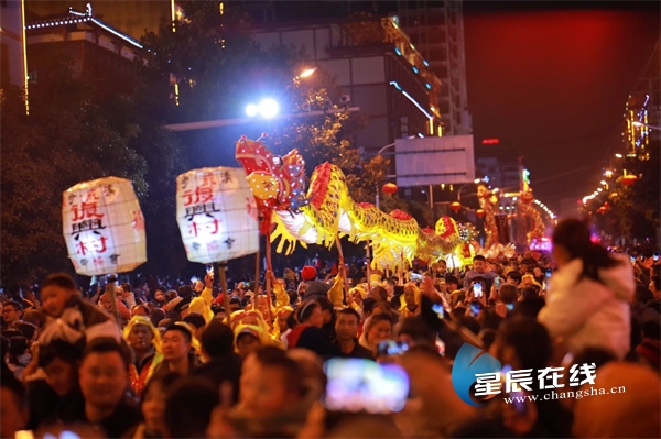 1月28日晚,湖南省城步县举行“非遗展盛世·龙狮闹新春”巡演活动。