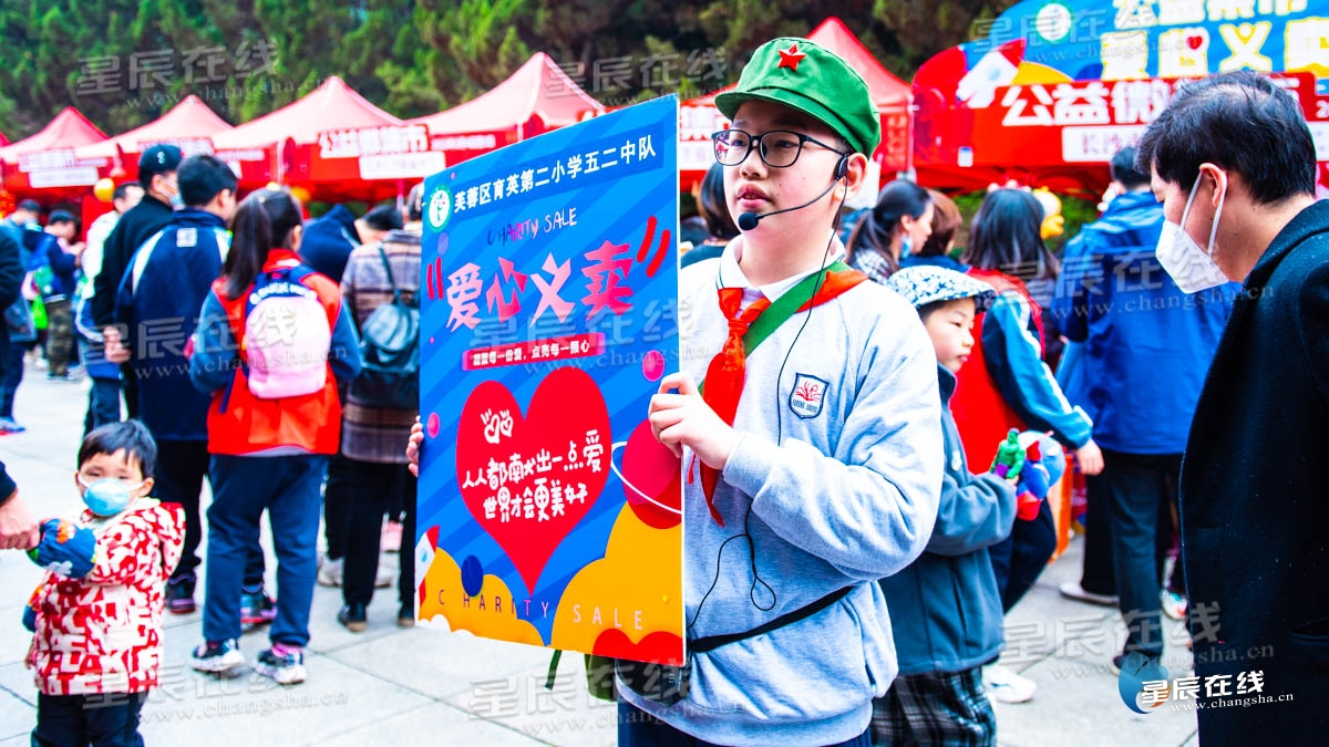 现场还有扮演“小雷锋”的孩子进行爱心义卖宣传。