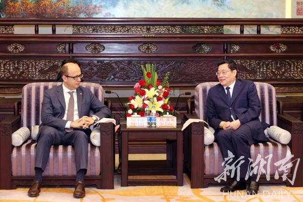 6月10日中午,省委书记、省人大常委会主任杜家毫在长沙会见来湘出席赠车仪式的白俄罗斯驻华大使鲁德·基里尔一行。湖南日报记者 罗新国 摄