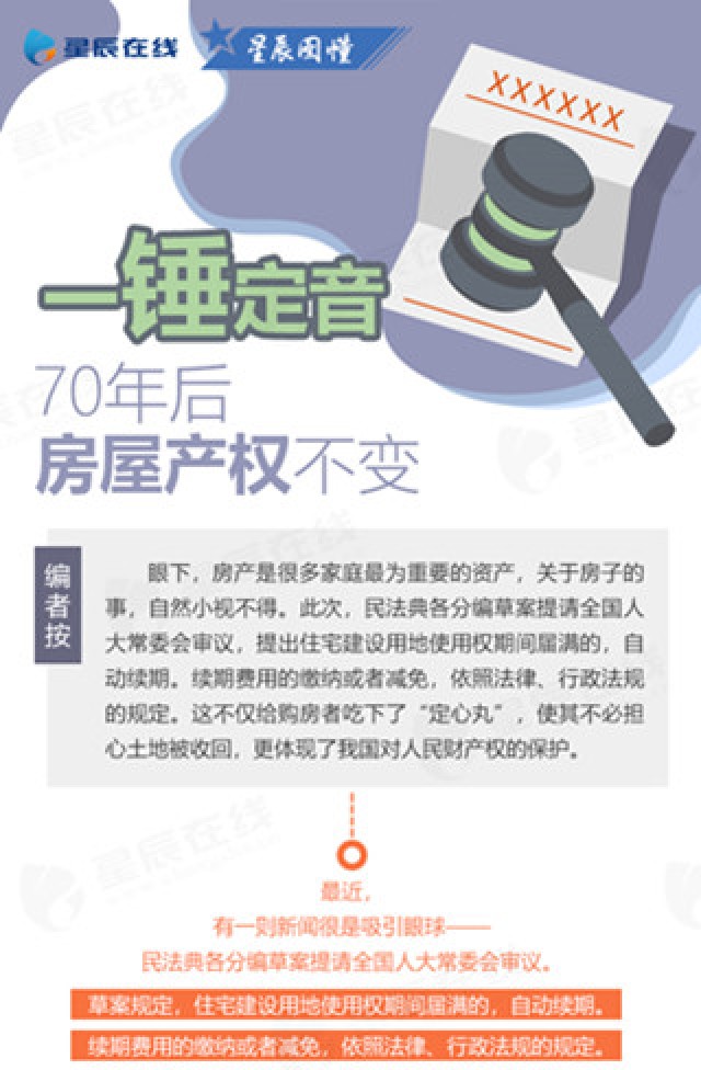 眼下,房产是很多家庭最为重要的资产,关于房子的事,自然小视不得。此次,民法典各分编草案提请全国人大常委会审议,提出住宅建设用地使用权期间届满的,自动续期。[详细]