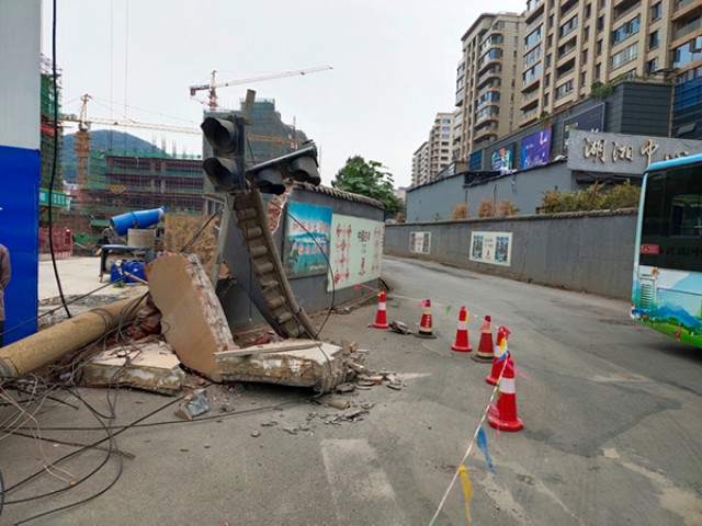 岳麓区:电线杆倒塌 网格长处置排隐患