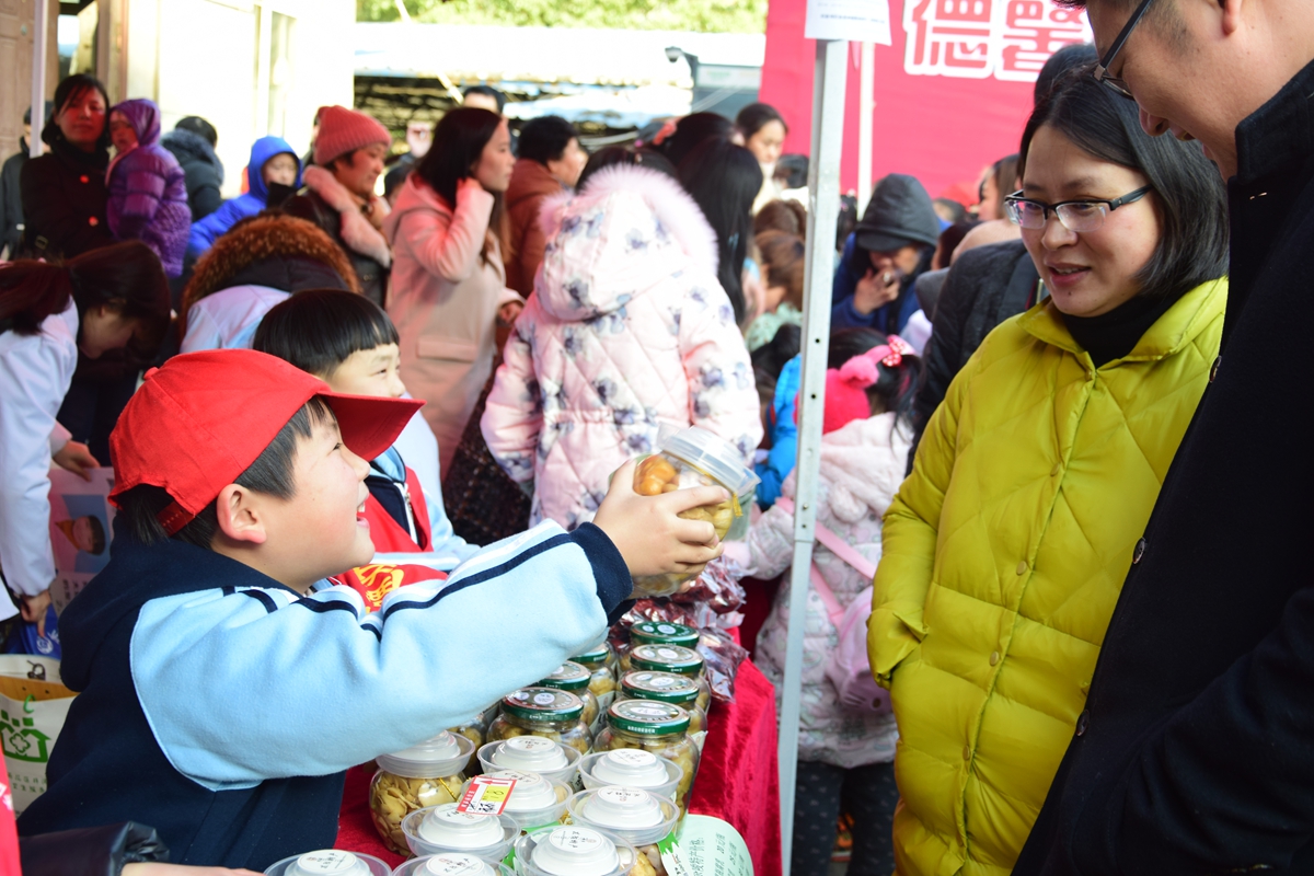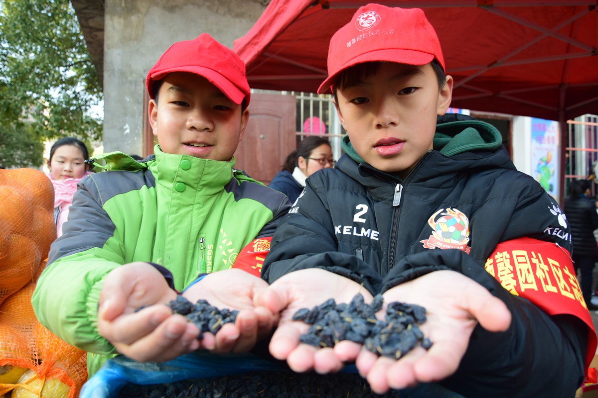 雨花区德馨园社区举办第二届爱心年货节,志愿者在售卖爱心年货。