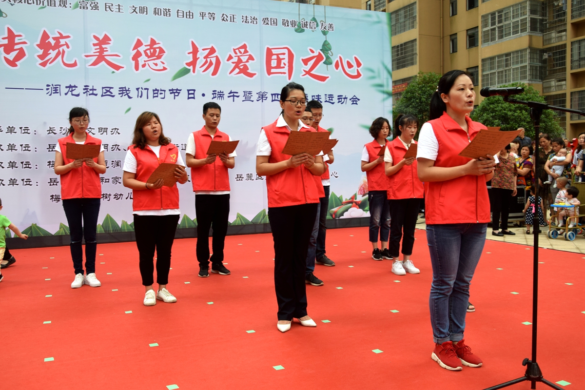 岳麓区润龙社区端午趣味运动会,志愿者发出文明过节倡议