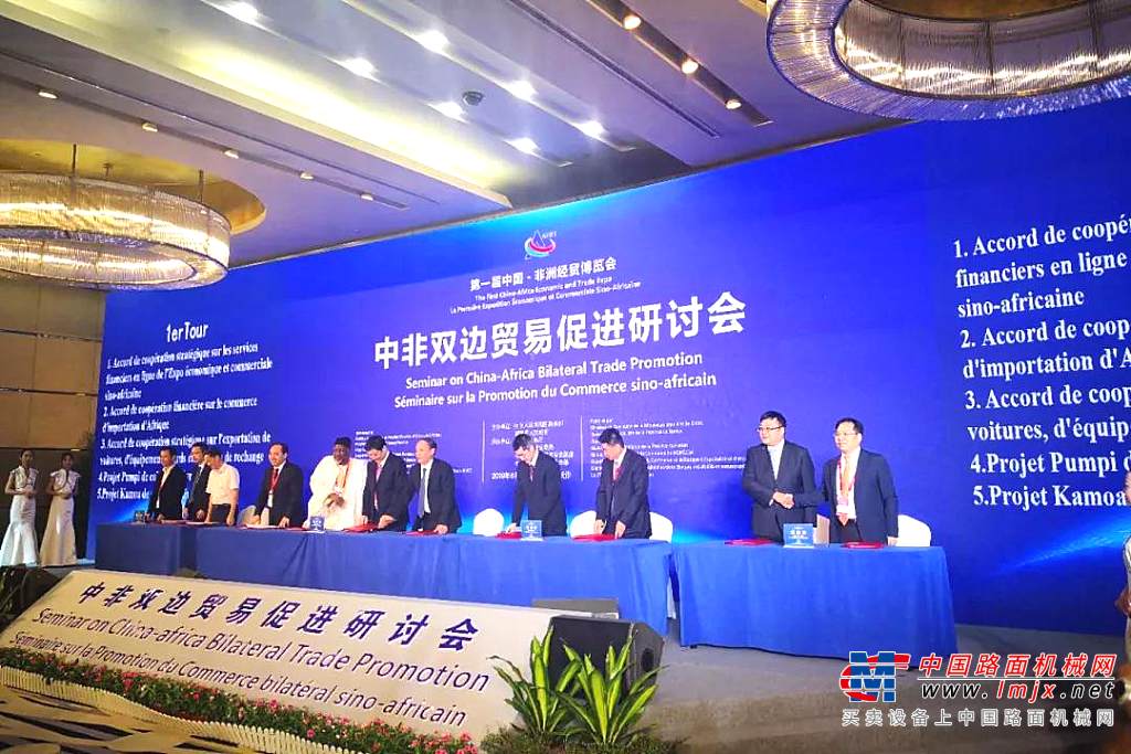 6月27日,中非经贸博览会首日,三一集团与尼日利亚李氏集团签下大额合同。李氏集团一次性向三一集团购买了包括汽车起重机、平地机、挖掘机、压路机在内的设备89台,合同金额上千万美元。