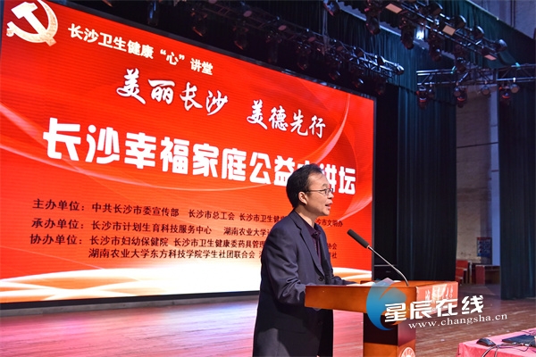 星辰在线4月7日讯(通讯员 周洪)4月7日,由长沙市委宣传部、市卫生健康委、市文明办联合主办,长沙市计划生育科技服务中心承办的“美丽长沙、美德先行——长沙幸福家庭公益大讲坛”第111期讲座走进湖南农业大学,向大学生科学讲述卫生保健知识。