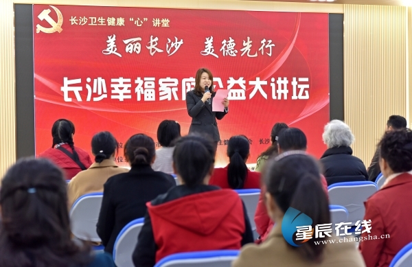 2013年8月,作为全国创建幸福家庭活动首批试点城市的长沙,正式启动以“美丽长沙、美德先行”为主题的长沙幸福家庭公益大讲坛。活动的开展旨在响应市卫健委落实健康长沙行动,扎实推进市卫生健康系统“我为群众办实事”实践活动,从卫生健康的角度,着眼家庭这个社会最基本的细胞,以人为本开展服务,大力弘扬家庭美德、传递社会文明、传播健康知识,讲座举办至今,因其接地气的内容受到了市民的热烈欢迎。