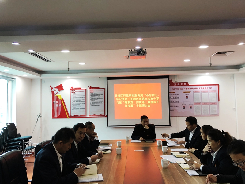(开福区行政审批服务局扎实推进“不忘初心、牢记使命”主题教育。图片来源:开福区行政审批服务局)