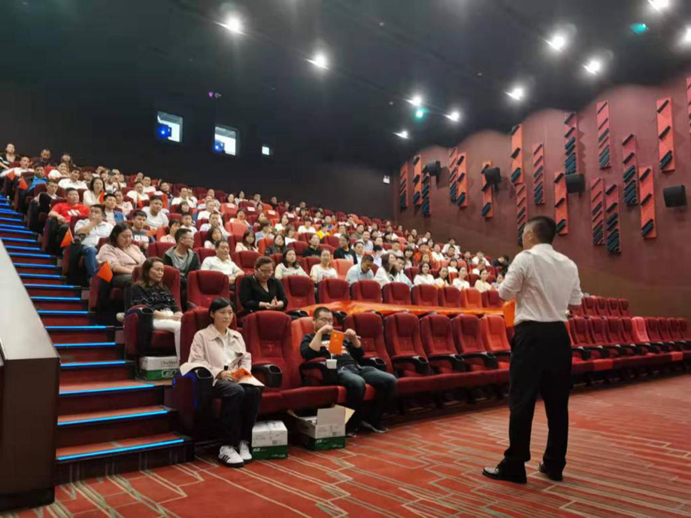 (干部职工观看《我和我的祖国》,深入推进“不忘初心、牢记使命”主题教育。图片来源:沙坪街道)