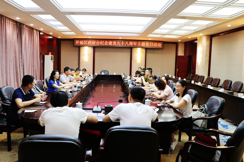 (开福区政府办举办纪念建党98周年主题党日活动。图片来源:区政府办)