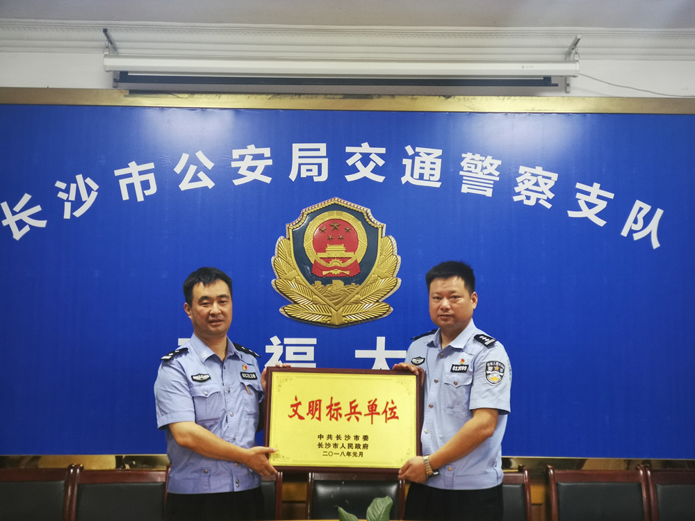 (开福交警大队被评为2017年长沙市文明标兵单位。图片来源:开福交警大队)