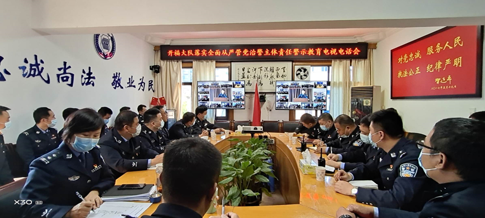 (4月28日,大队召开落实全面从严管党治警主体责任警示教育电视电话会。图片来源:开福交警大队)