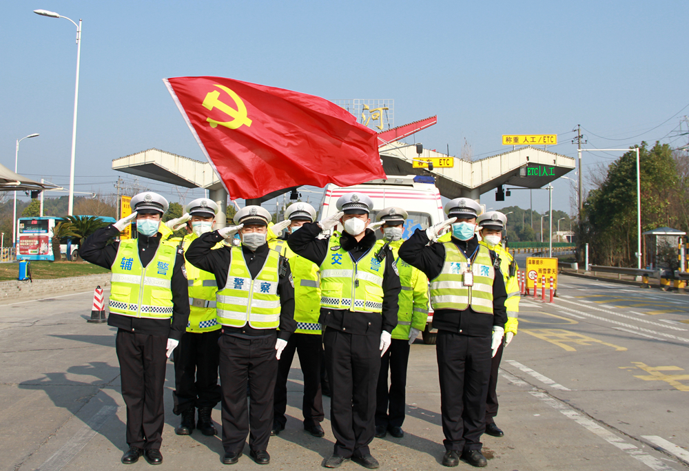 (新冠肺炎疫情防控期间,大队党员突击队在辖区高速出口值守。图片来源:开福交警大队)