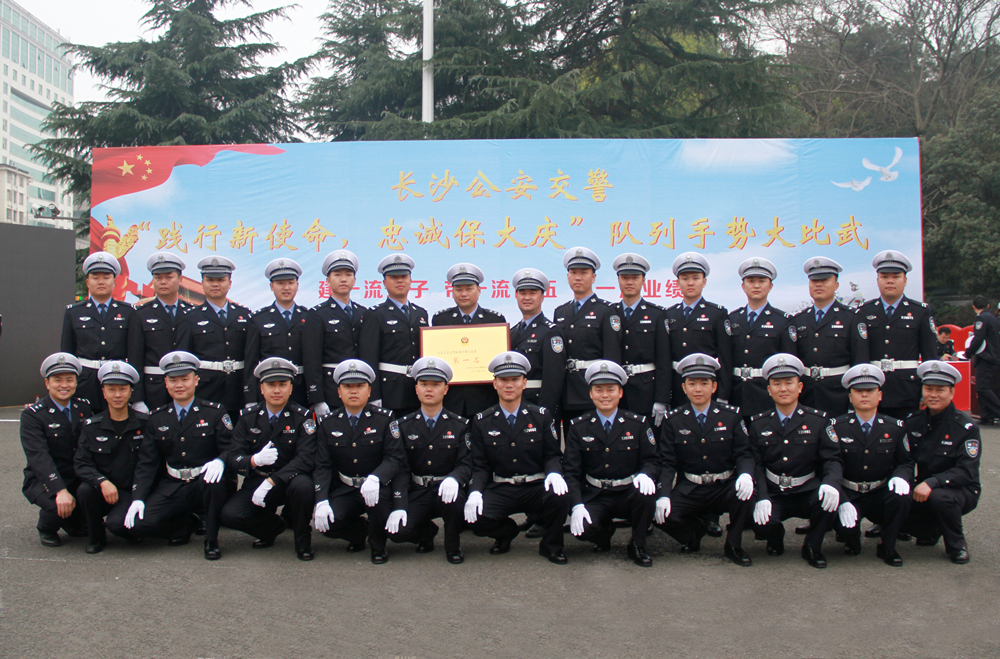 (大队荣获全市交警系统手势队列大比武第一名。图片来源:开福交警大队)