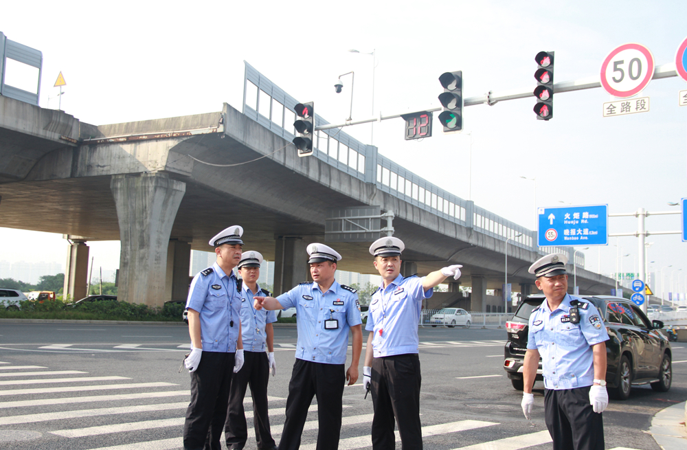 (调研湖南广电周边交通组织优化。图片来源:开福交警大队)