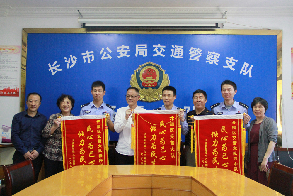 (5月24日,华盛新外滩业主送锦旗。图片来源:开福交警大队)
