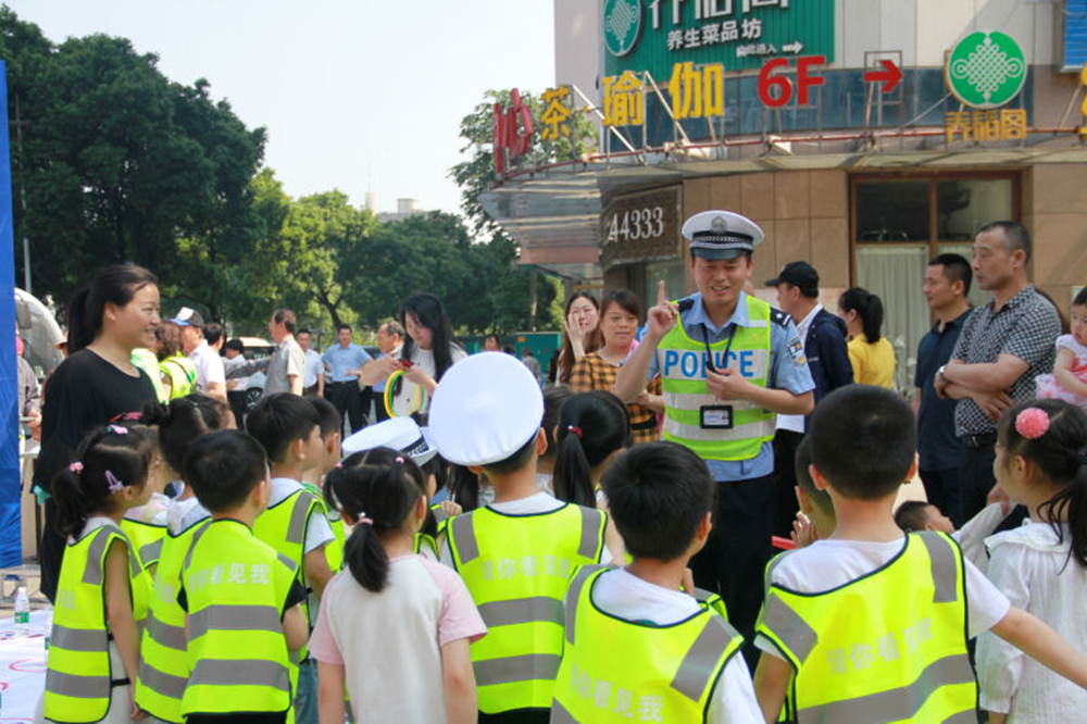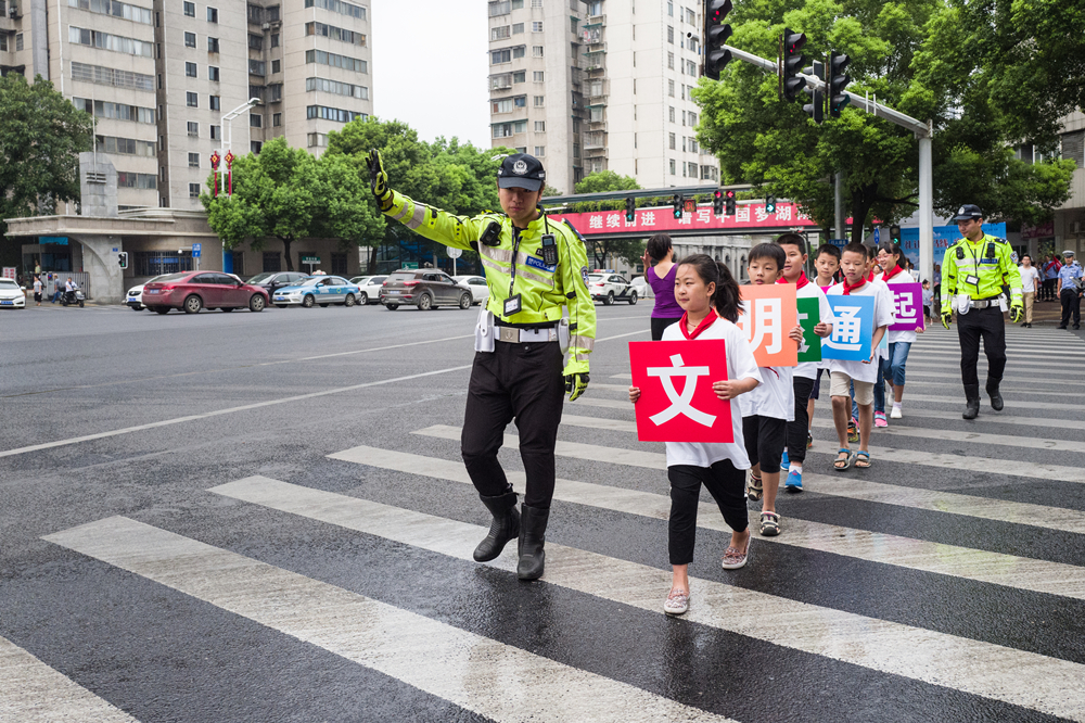 (行平安路、回幸福家交通安全宣传进校园。图片来源:开福交警大队)