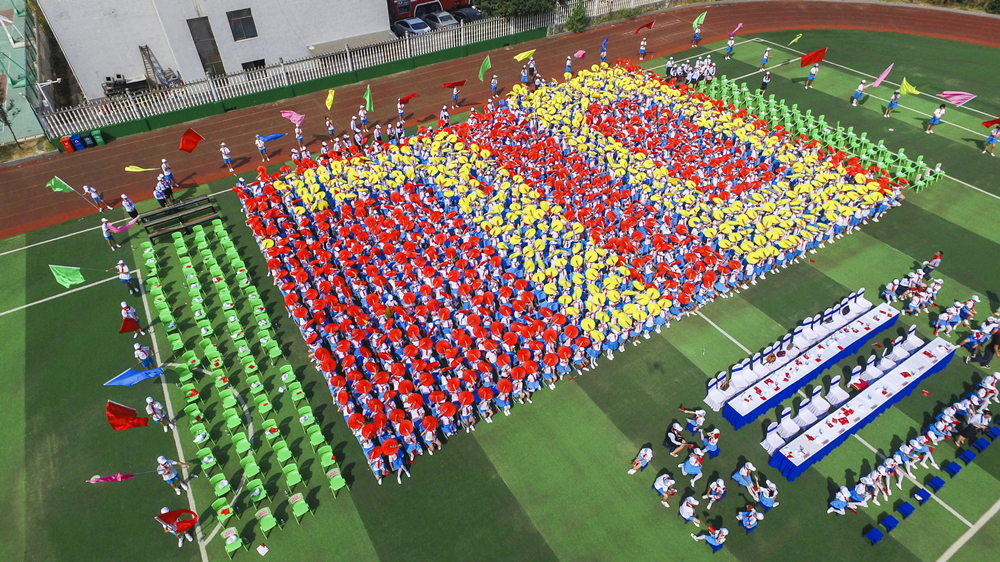 (2019年“红色旗帜永飘扬,厚德开福在传承”庆祝建国70周年暨建队70周年活动。图片来源:开福区少年宫)