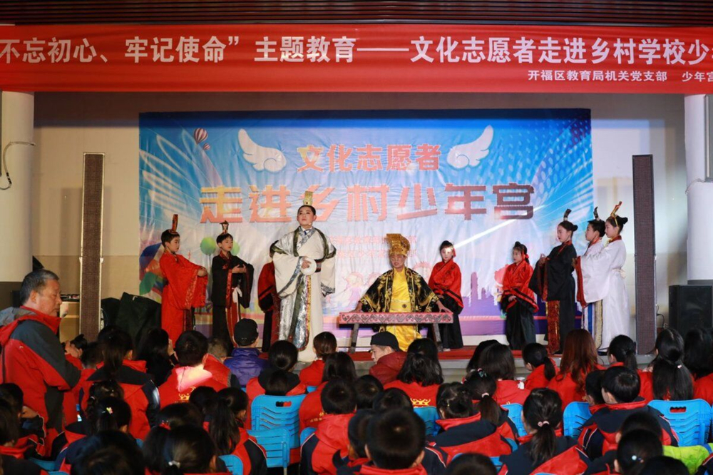 (开福区教育局党支部与区少年宫支部联合开展文化志愿者走进汉回小学乡村学校少年宫活动。图片来源:开福区少年宫)