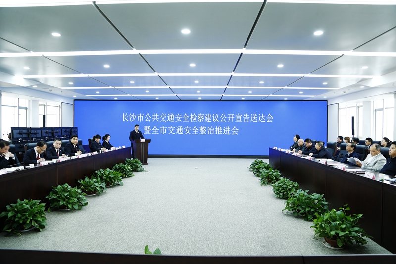 (2019年12月13日上午,长沙市人民检察院、开福区人民检察院和长沙市交通运输局在长沙市交通运输局十一楼会议室举行公共交通安全检察建议公开宣告送达会暨全市交通安全整治推进会。这是全国首例针对交通运输领域的行政公益诉讼诉前检察建议,取得了很好的法治效果和社会效果。图片来源:开福区人民检察院)