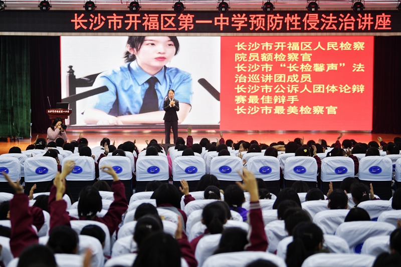 (2019年12月16日,开福区人民检察院在开福区第一中学开展“预防性侵害”专题法治讲座,得到了广大师生的一致肯定,进一步提高了未成年人的法治意识。图片来源:开福区人民检察院)