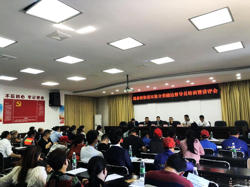 (区城管执法局参与垃圾分类桶边督导员培训暨讲评会,为指导街道和社区做好源头分类“充电”。图片来源:开福区城管执法局)