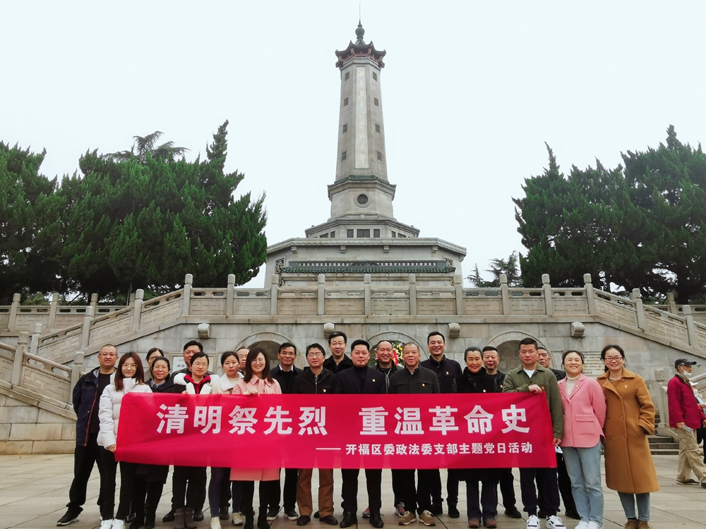 (全体党员来到长沙烈士公园开展“清明祭先烈 重温革命史”主题党日活动。图片来源:开福区委政法委)