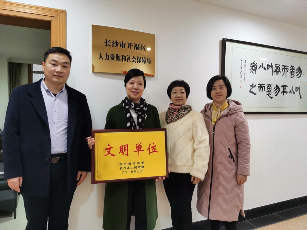 (开福区人社局荣获2018年“市级文明单位”荣誉。图片来源:开福区人社局)