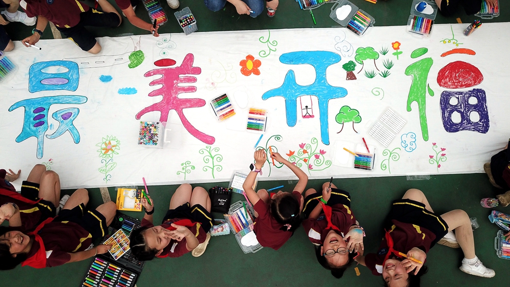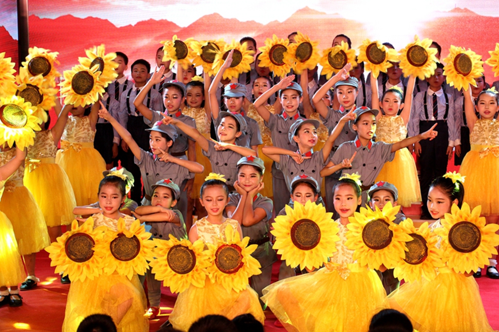 (2020年5月28日上午,开福区第一小学举行了以“百米画卷,绘金色童年”为主题的六一庆祝活动。)