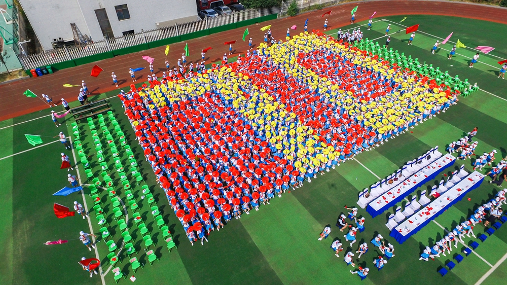 (清水塘二小.方阵摆成70字样,祝祖国生日快乐。)