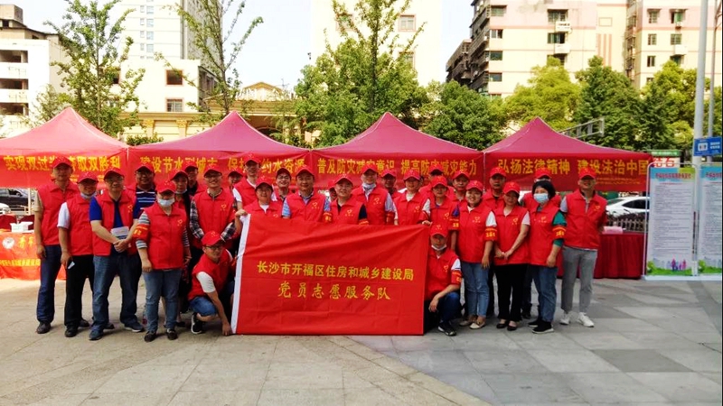 (党员志愿者开展“433产业攻坚”志愿服务活动。图片来源:开福区住房和城乡建设局)