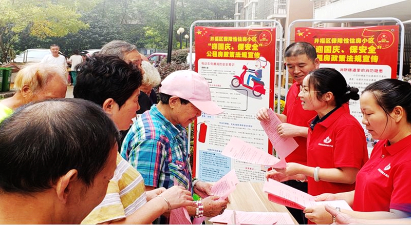 (深入住宅小区向群众开展公租房政策法规宣传。图片来源:开福区住房和城乡建设局)