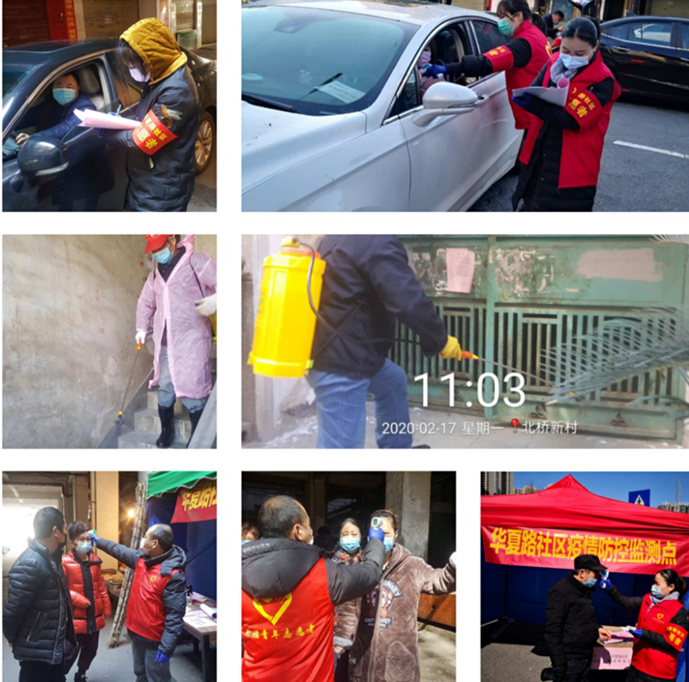 (测温、登记、消杀、复工复产……2020年防疫期间,防疫志愿者的加入为打赢疫情防控战贡献了重要力量。图片来源:新河街道办事处)