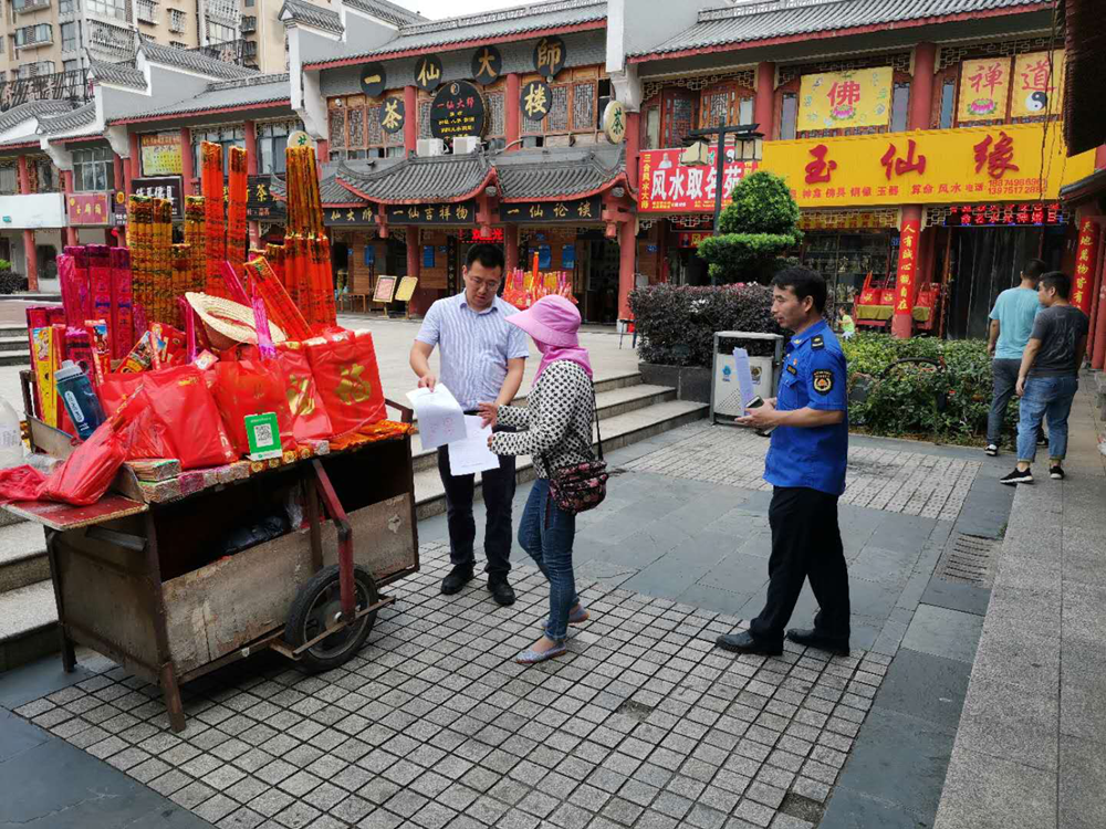 (新河街道开展定期开展农贸市场、开福寺周边等重点区域周边环境综合整治,维护城市秩序。图片来源:新河街道办事处)