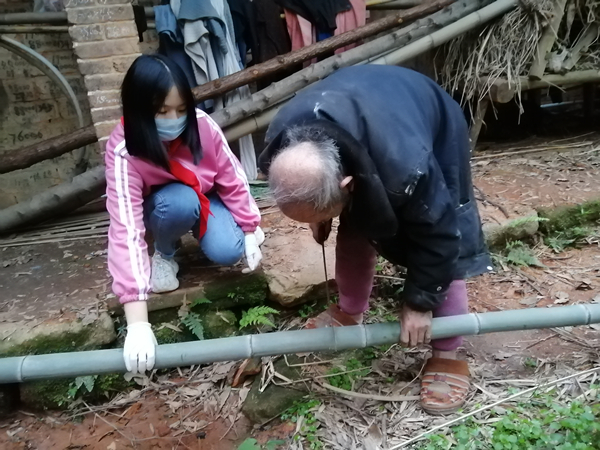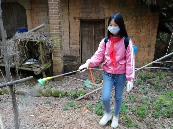 爷爷喜欢编竹蓝,我用带来的消毒设备给爷爷房子前后消毒完成后,帮爷爷去山里砍竹子,爷爷到底是年龄大了,砍了半天砍不动,还不如我这小屁孩力气大,爷爷又比较固执,非要自己砍,我们同去伙伴,劝不动,就只能默默支持他。