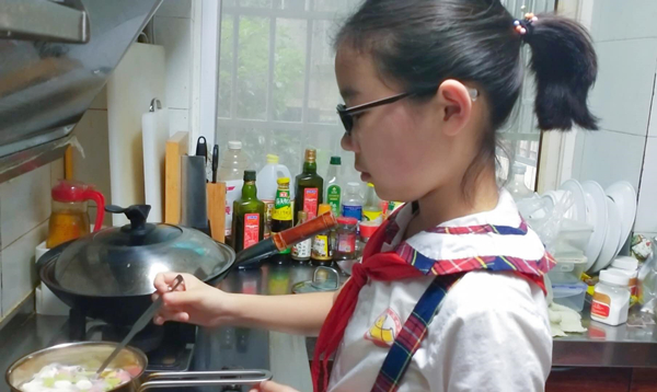 美好的一天从清晨开始,周末早上李惟繇为家人做一份营养又健康七彩鸡蛋面!她喜欢烹饪,每次学校组织春游她都会自己制作美味的寿司和花生糖。