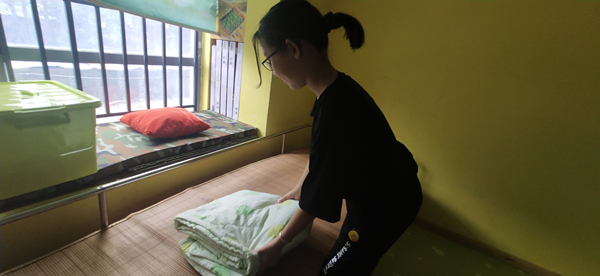 助残中心的小伙伴们午睡起床后,我会帮他们叠好被子,整理好房间。
