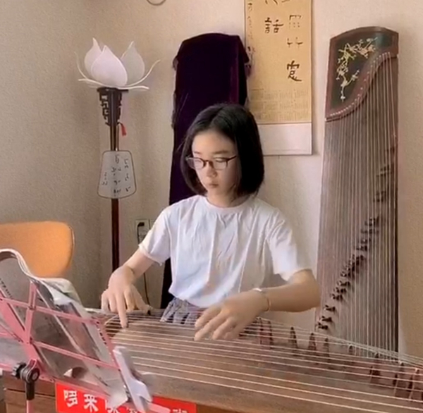 晚上惟繇会去老师那里学古筝或是在家里练习古筝。