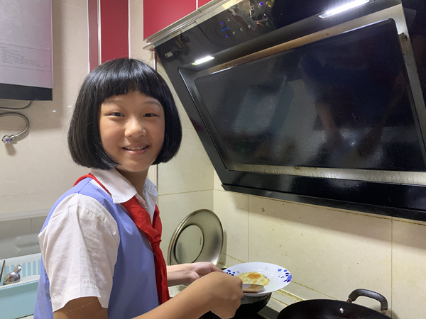 美好的一天从自做早餐开始!从四年级开始,在妈妈的指引陪伴下,我每天早晨坚持自做早餐,自觉劳动本领多!