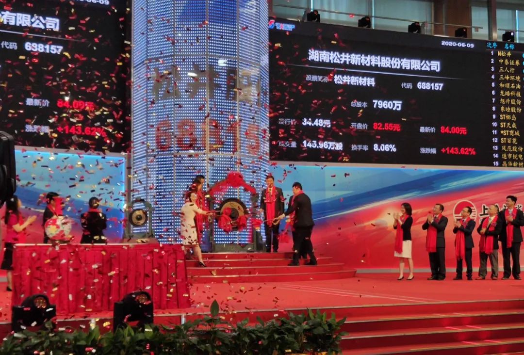 ▲ 图为2020年6月,来自宁乡经开区的松井股份(股票简称)正式登陆A股市场科创板。