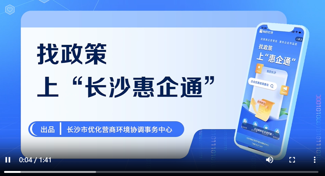 惠企政策精准推送、企业诉求一键直达、企业办事在线“零跑腿”。长沙市优化营商环境协调事务中心依托“我的长沙”App打造“长沙惠企通”平台,构建“一站式”惠企服务总入口,实现政策发布解读、搜索匹配、及时推送,法人亮证、投诉受理等相关企业服务移动办、掌上办,让企业能够更加便捷、更加公平、更加透明地享受政策红利。