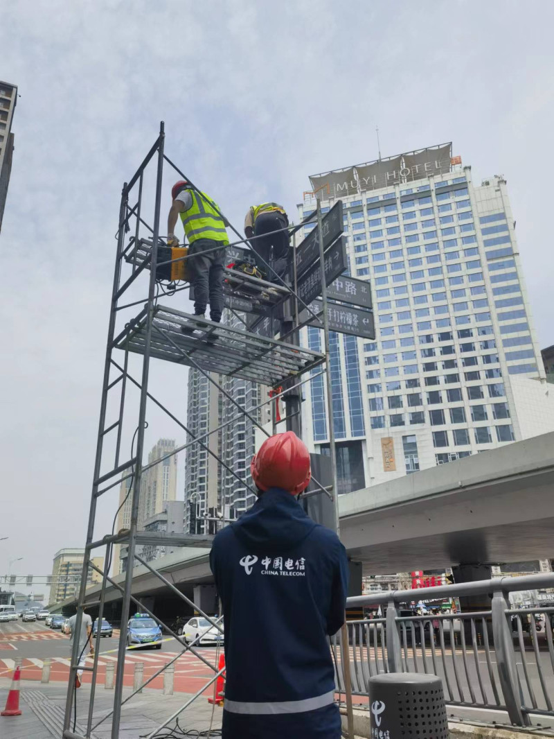 电信工程师在长沙市中心五一广场调试新设备。均为受访方供图