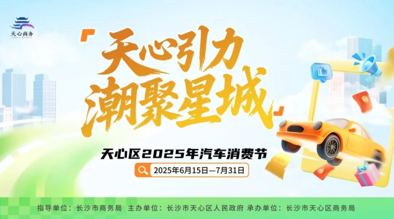 星辰在线6月16日讯 据长沙晚报掌上长沙(全媒体记者 洪虹)报道,记者于6月16日从天心区商务局获悉,天心区正式启动“天心引力·潮聚星城”2025年汽车消费节活动。6月15日至7月31日期间,个人消费者在天心区指定车企购买新车,最高可申领4000元消费券补贴。